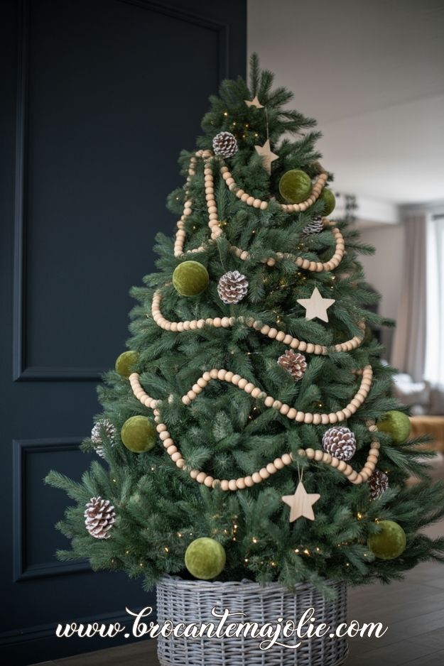Start with a natural-looking Christmas tree, whether it’s a lush green artificial tree or a freshly cut spruce, pine, or fir.