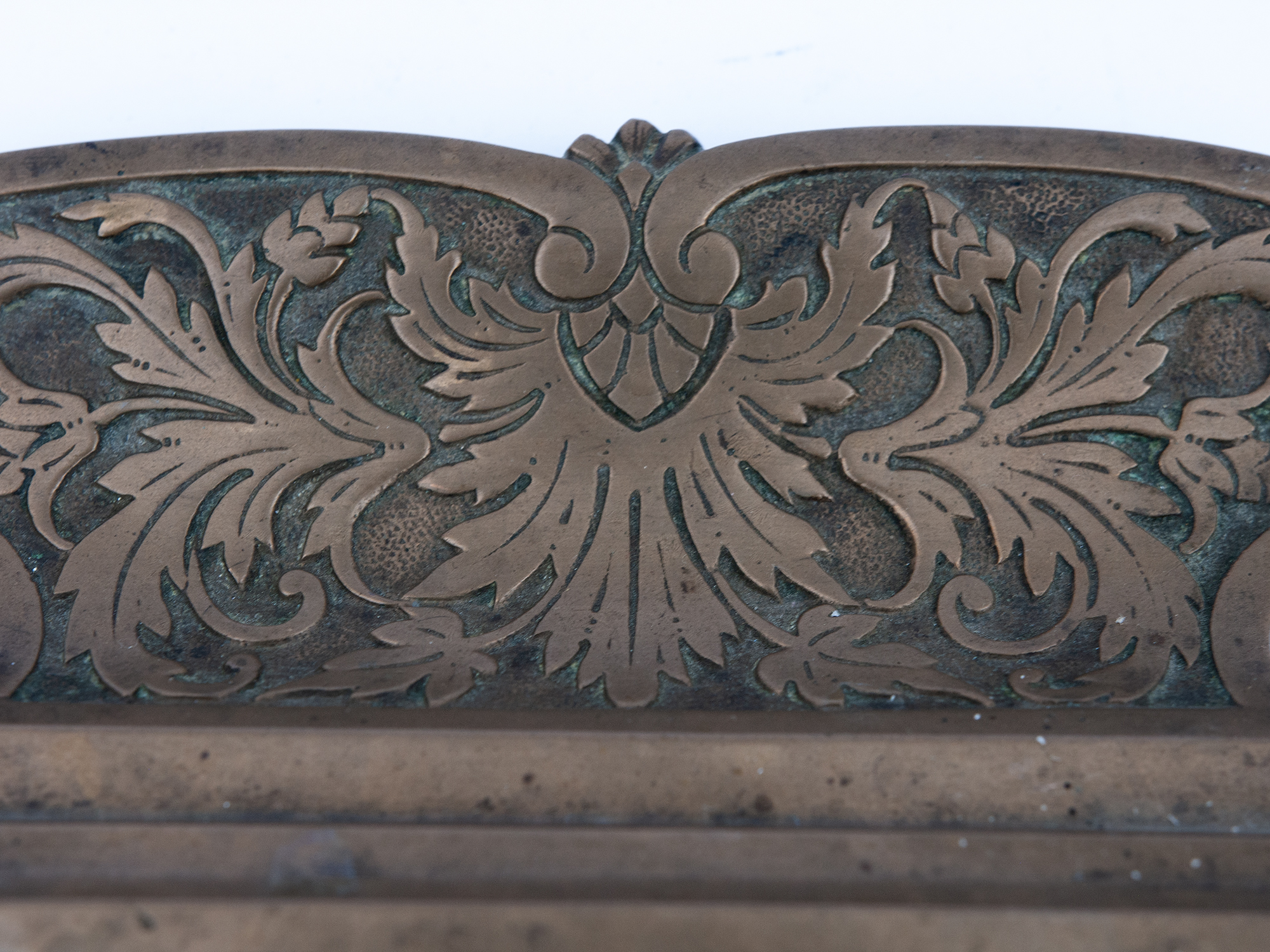 This antique bronze desk inkwell is the kind of object that instantly brings character to a workspace. Solid, richly decorated, and beautifully aged, it feels like it once belonged on the desk of a notary, writer, or scholar.