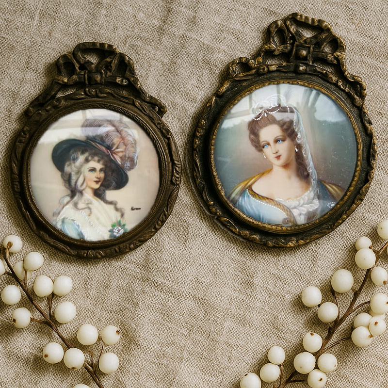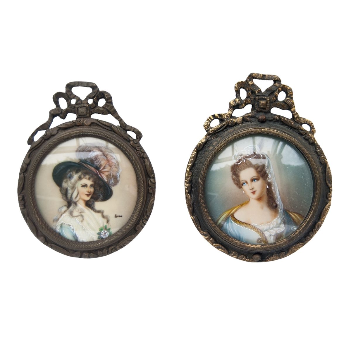 Set of 2 Antique French Hand-Painted Miniatures – 19th Century Signed PortraitsAvailability: In stock