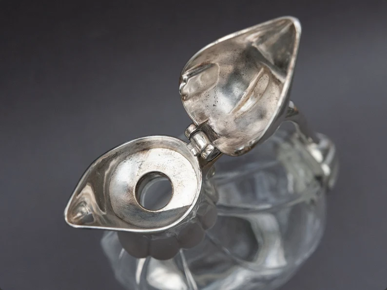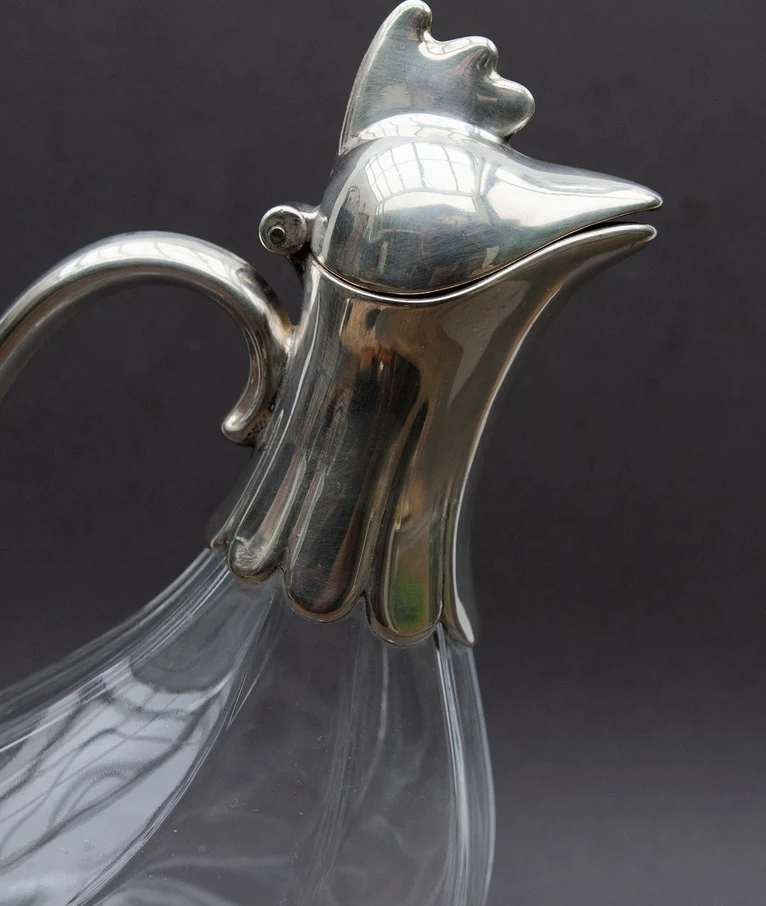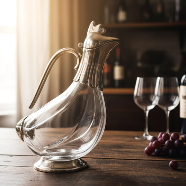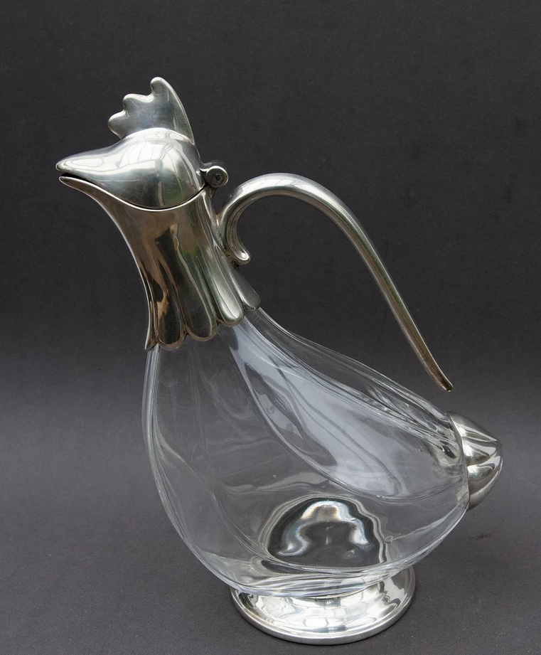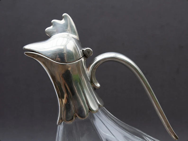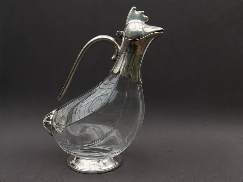 Antique glass mid century decanter – French vintage rooster pitcherAvailability: In stock