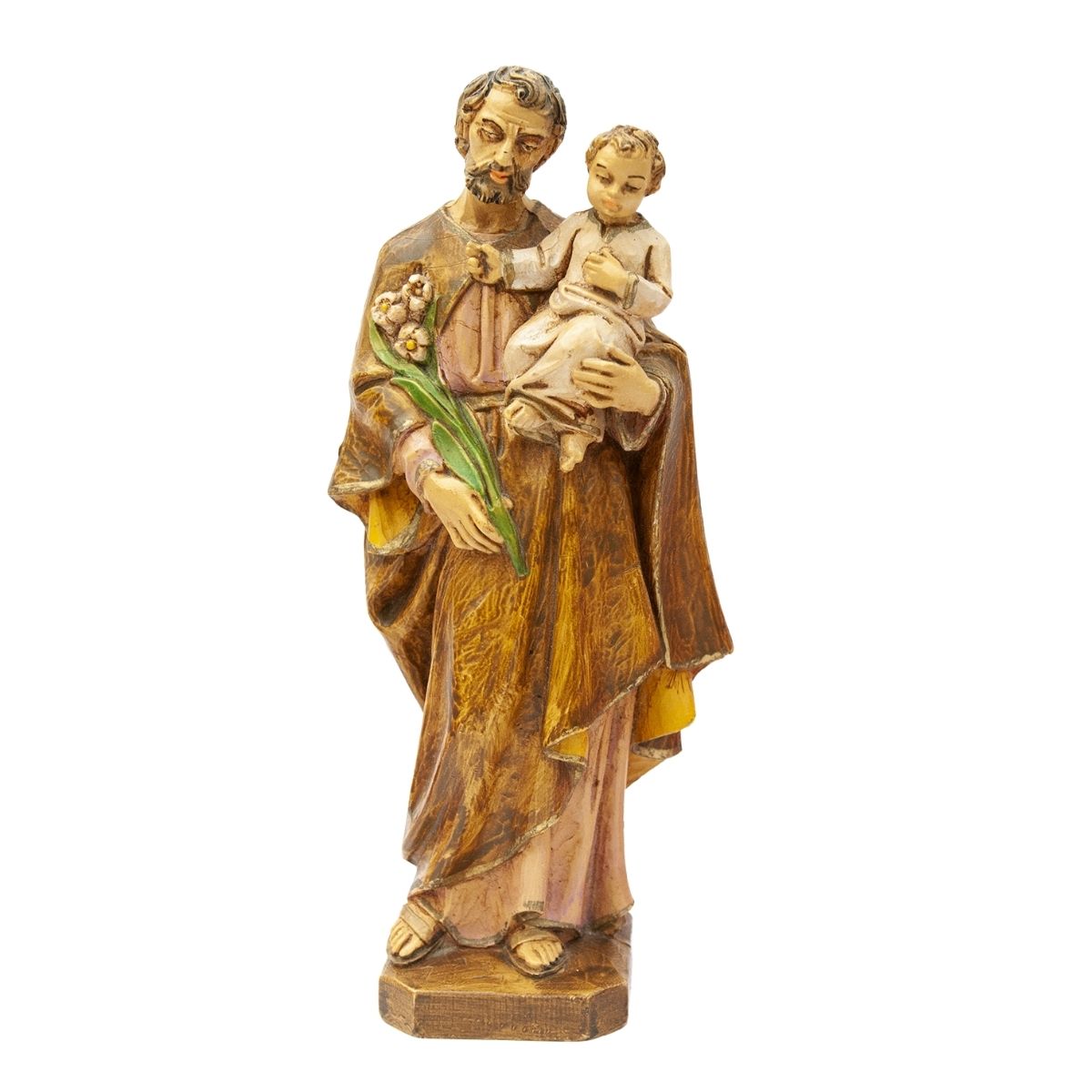 ♥ DESCRIPTION: Vintage French religious statue in resin, representing Saint Joseph and a child, signed by H. MALSINER (Italy). Dates from 1960’s. ♥ CONDITIONS: very good, shows some signs of use (refer to photos) ♥ HEIGHT: 8.5″ ♥ WEIGHT: 1 lbs | 0.45 kg