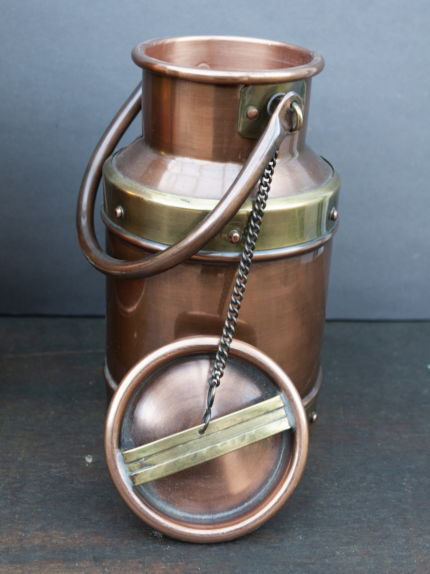 French Copper Milk Can Set with Brass AccentsAvailability: In stock