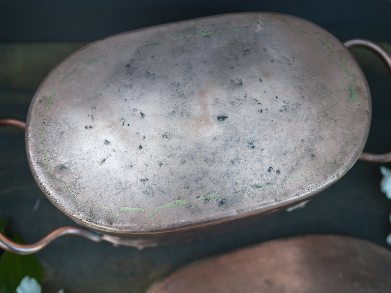 Very good for its age with imperfections due to artisanal work. Possible tiny dents and stains. The inside has been blackened by time (refer to photos).