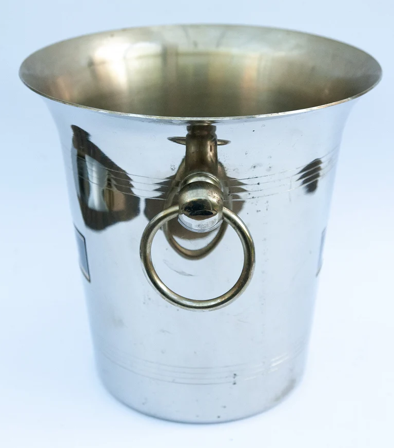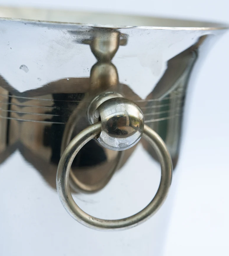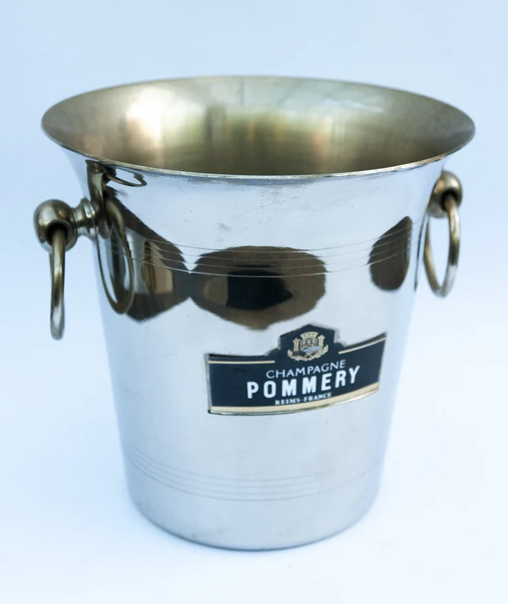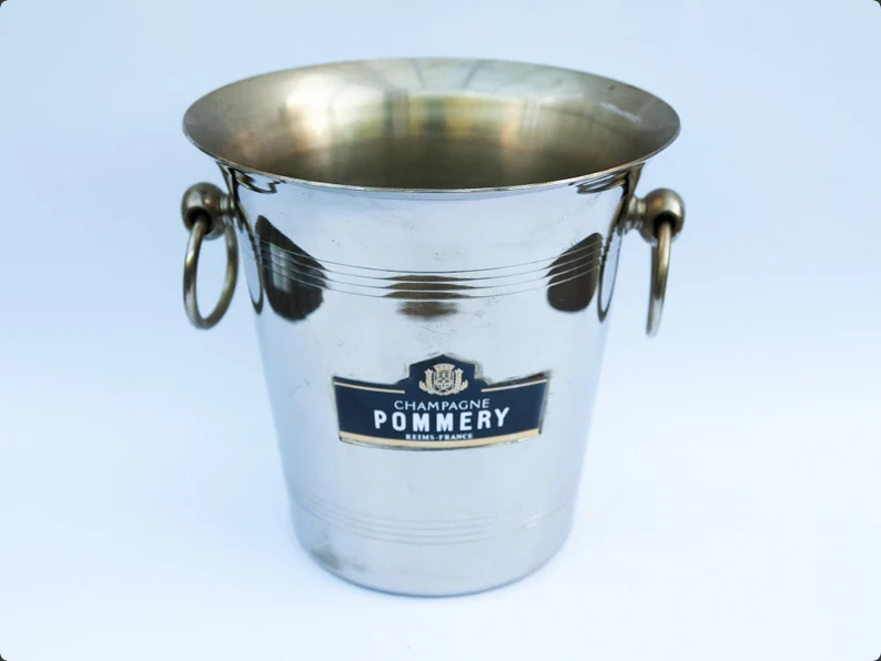 Vintage French champagne bucket in thick silver metal, with two handles. It’s from the brand “POMMERY” (Reims). Made in France.
