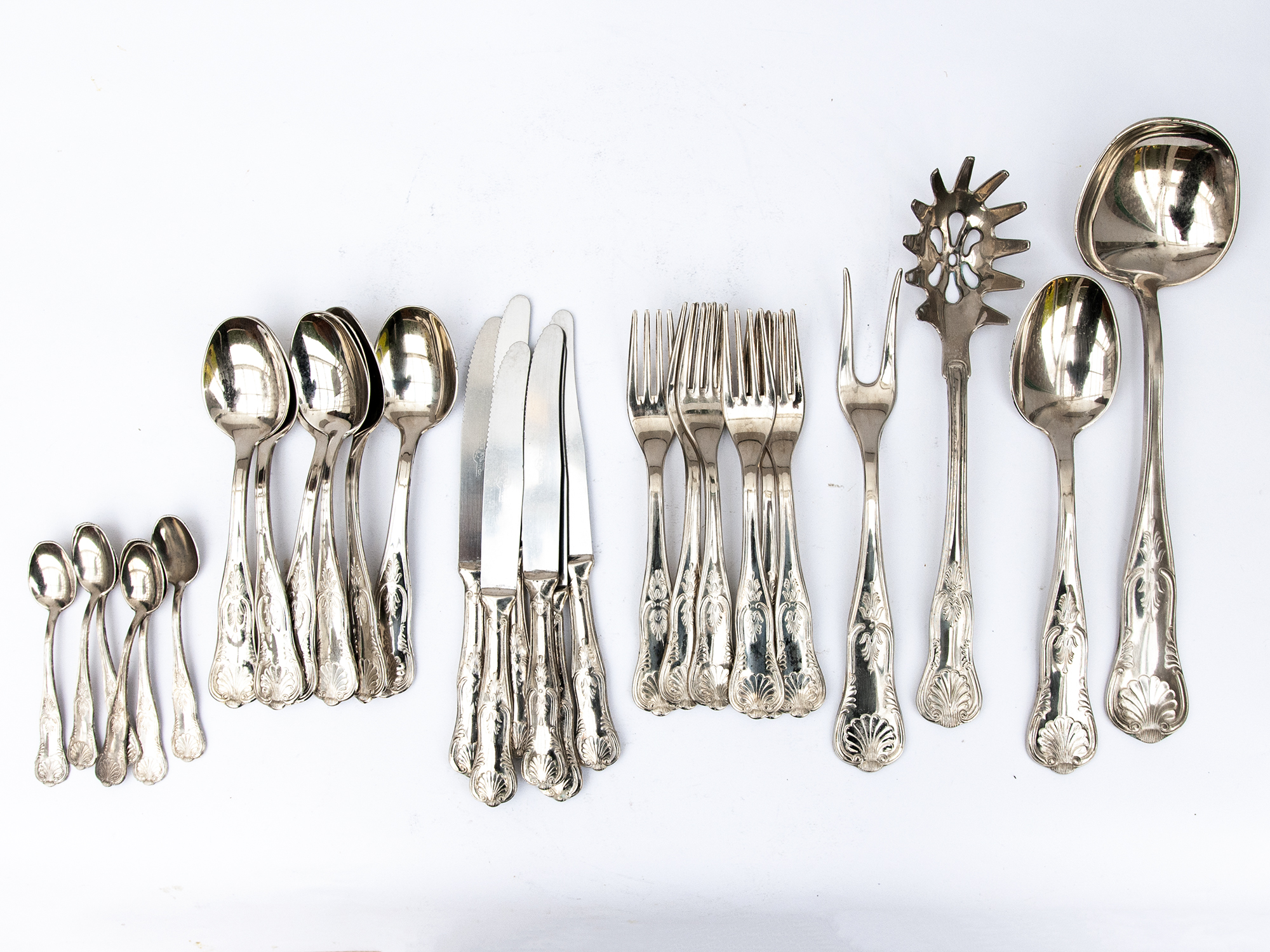 Vintage French Silver Plated Flatware – Cutlery Set for 6 with Serving PiecesAvailability: In stock