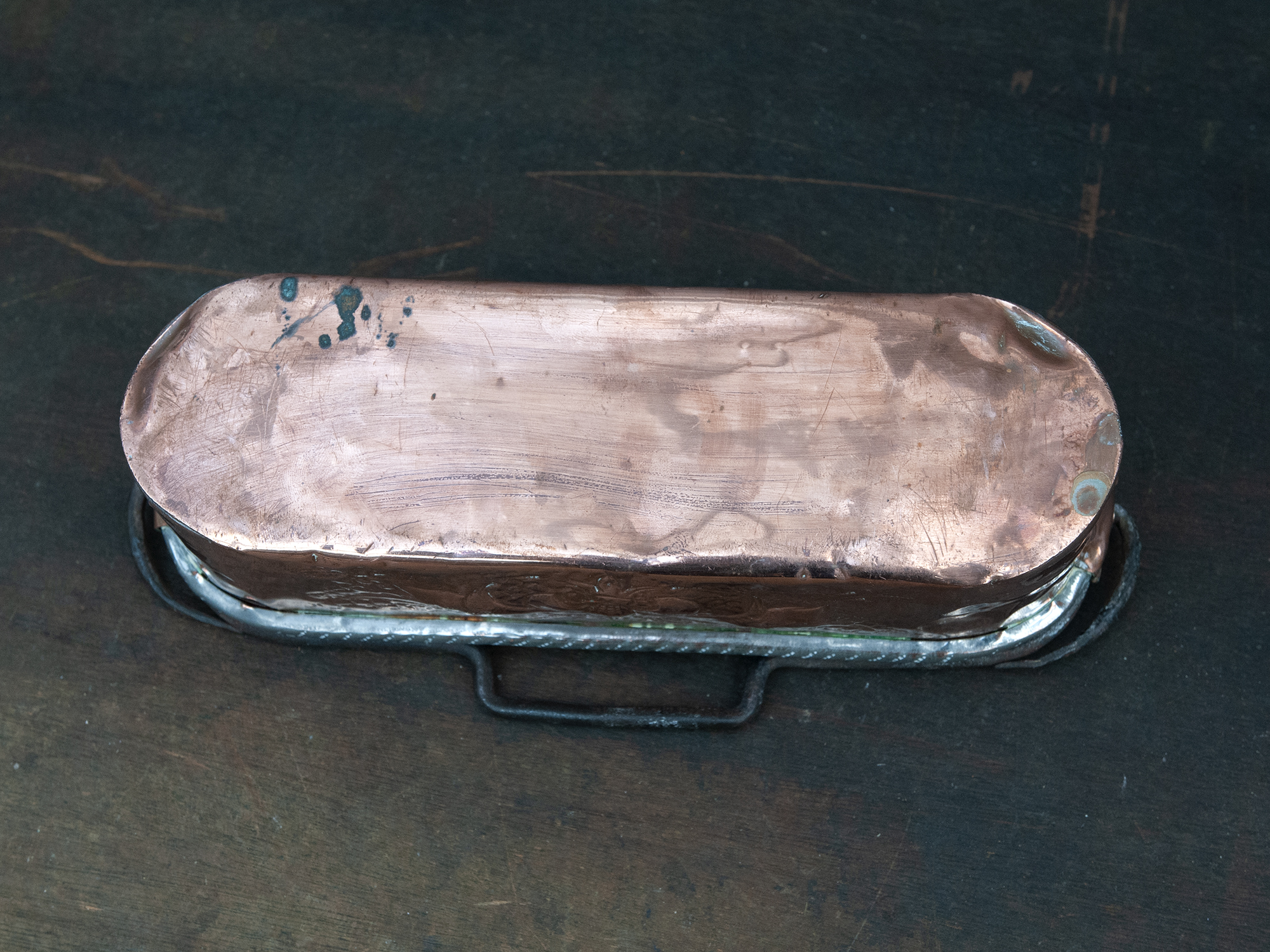 This small antique copper fish poacher is a truly exceptional survivor from the late 18th to early 19th century. Pieces of this size are quite rare. In more than ten years of flea market hunting across France, I have only come across a handful like this.