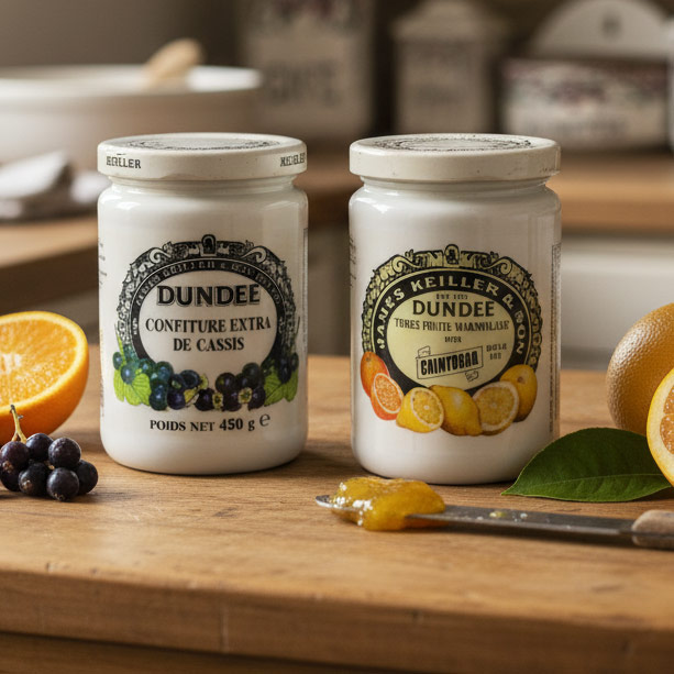 Vintage Dundee marmalade jars with French labelsVintage Dundee marmalade jars with French labels