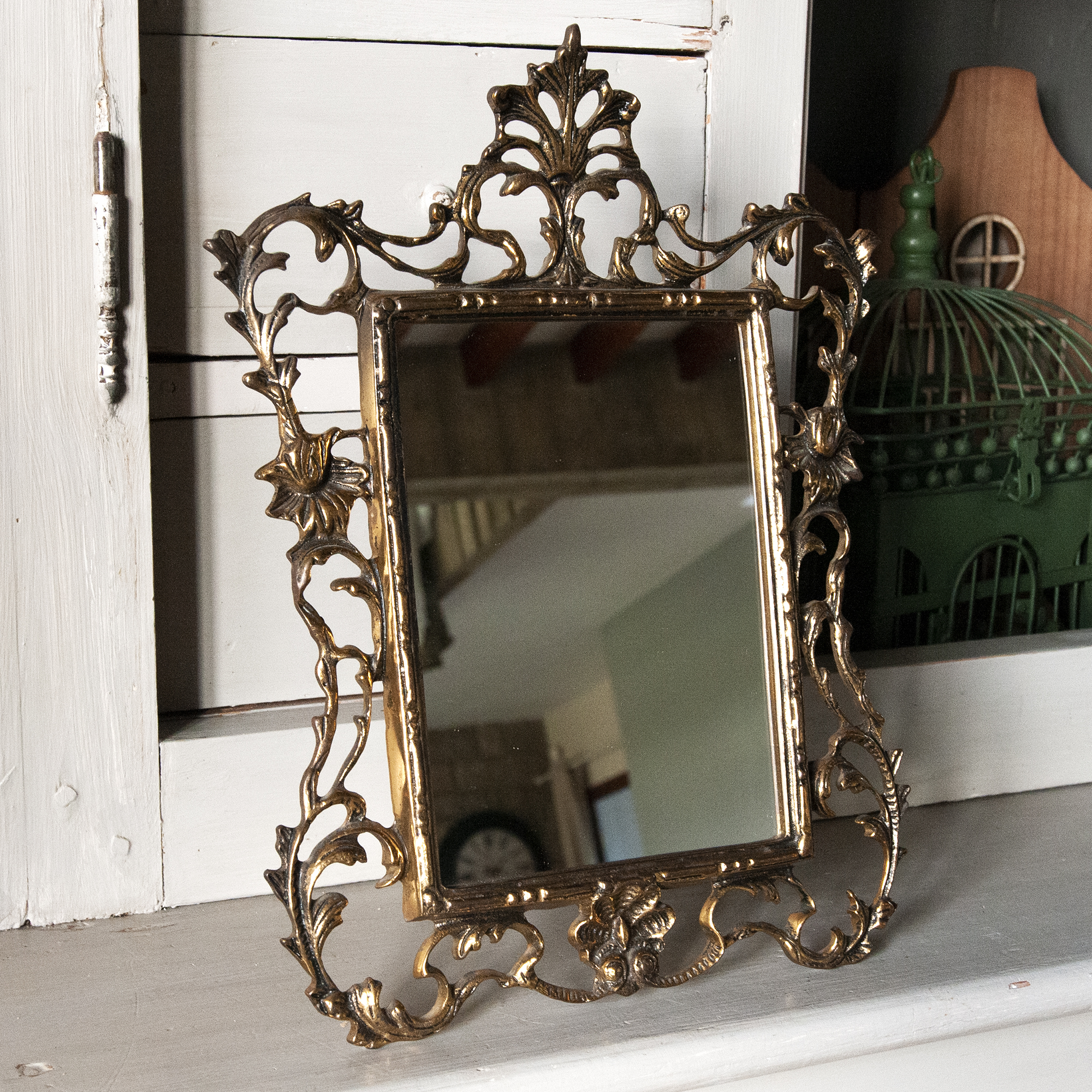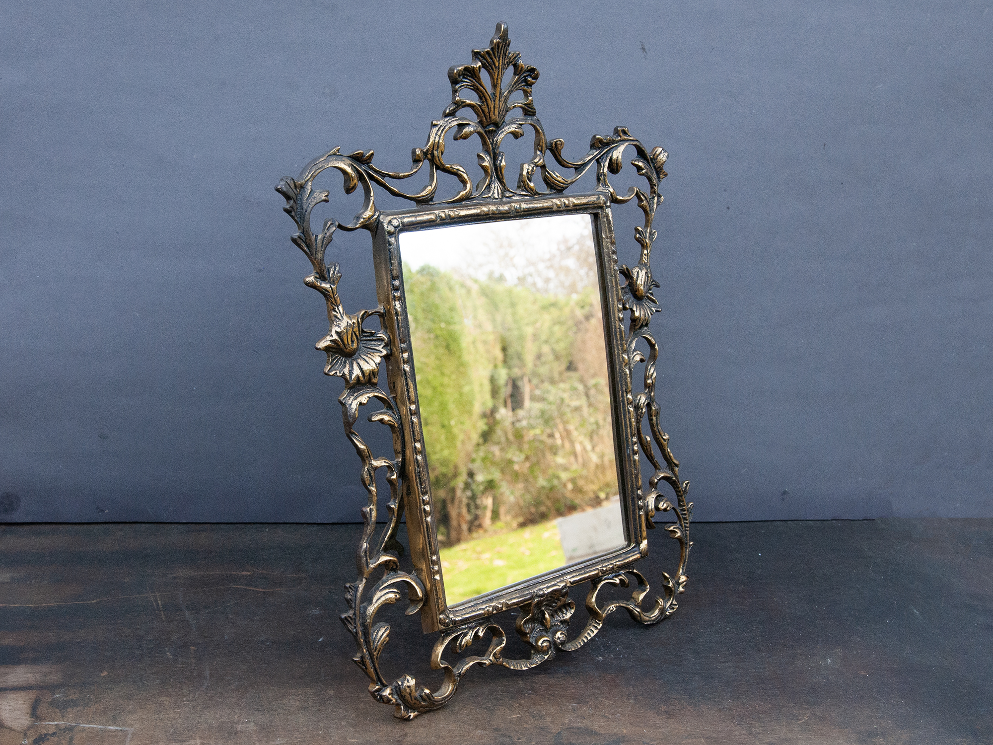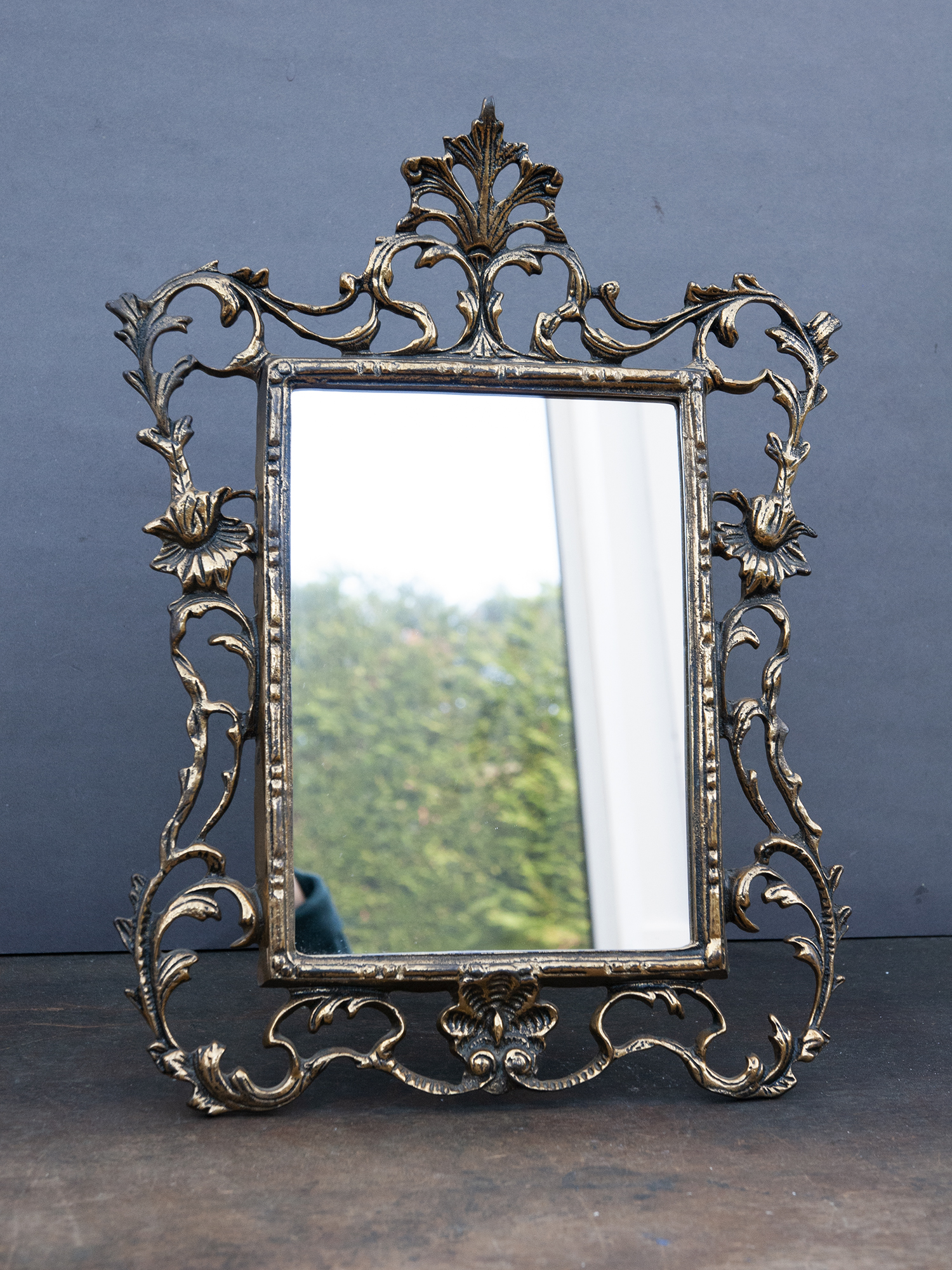 Vintage Brass Tabletop Mirror – Ornate French Rococo Vanity Mirror in Bronze