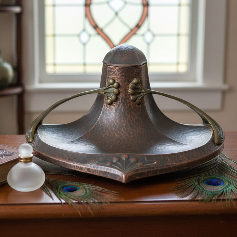 ✔ Authentic Art Nouveau French copper inkwell