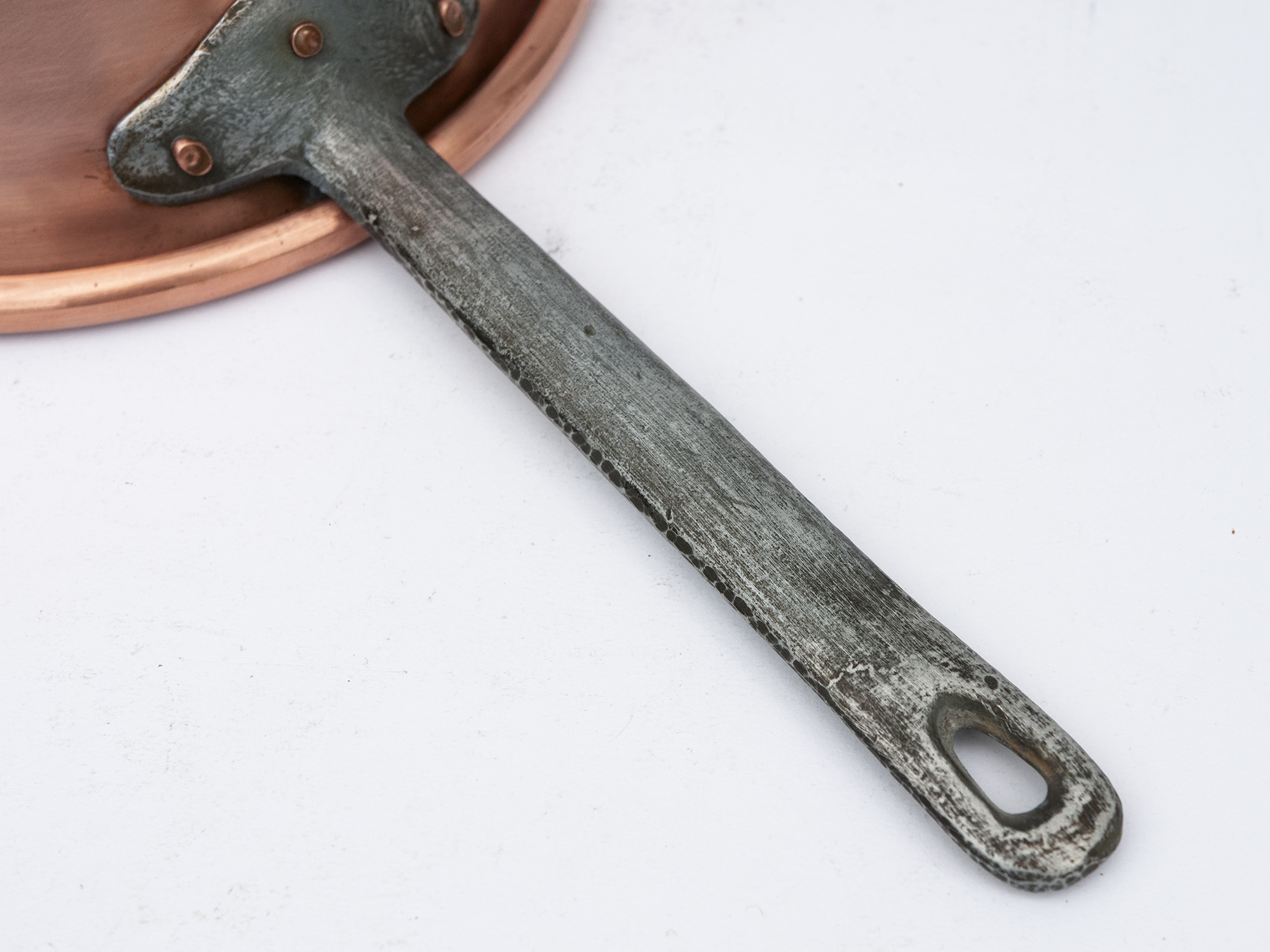 A rare and practical copper piece that works beautifully both in the kitchen and as decorative cookware in a French country or rustic kitchen.