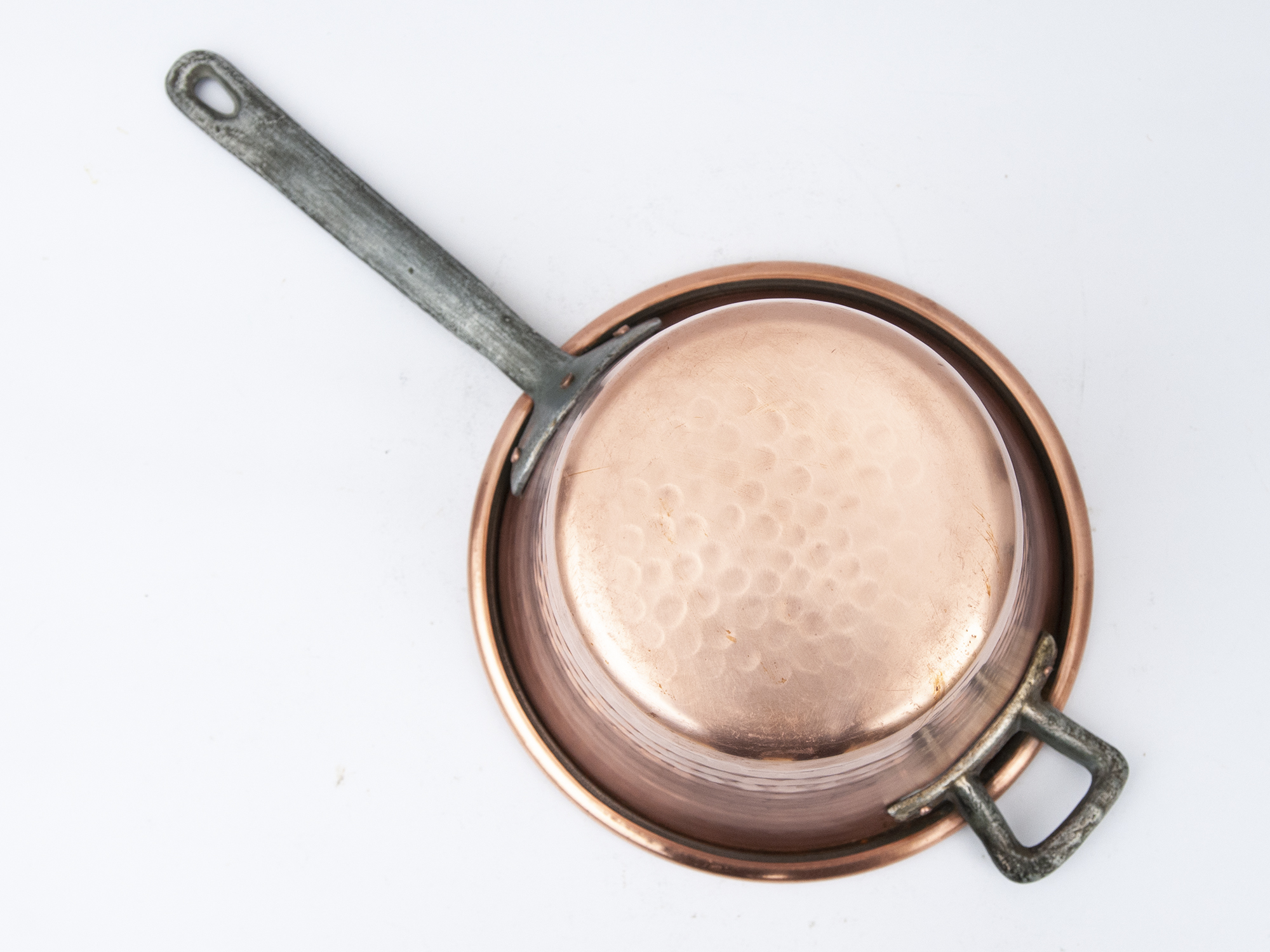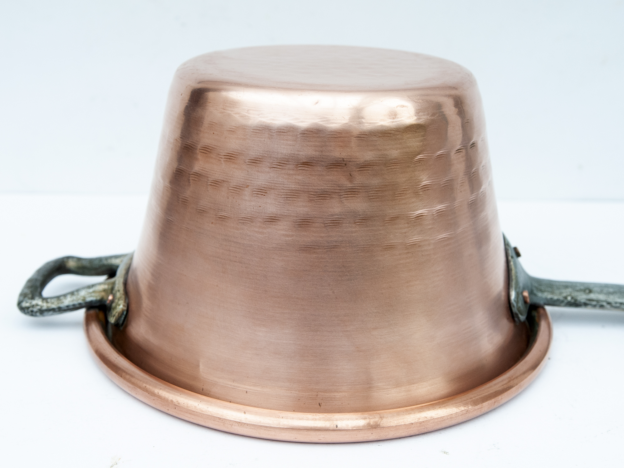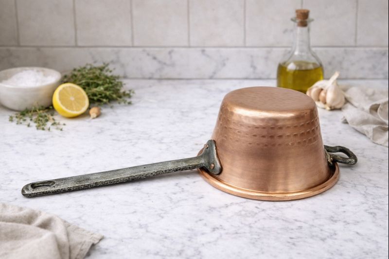 Made from solid copper and crafted using traditional techniques, this pan was designed for gentle even cooking: ideal for polenta, custards, sauces, or bain-marie preparations.