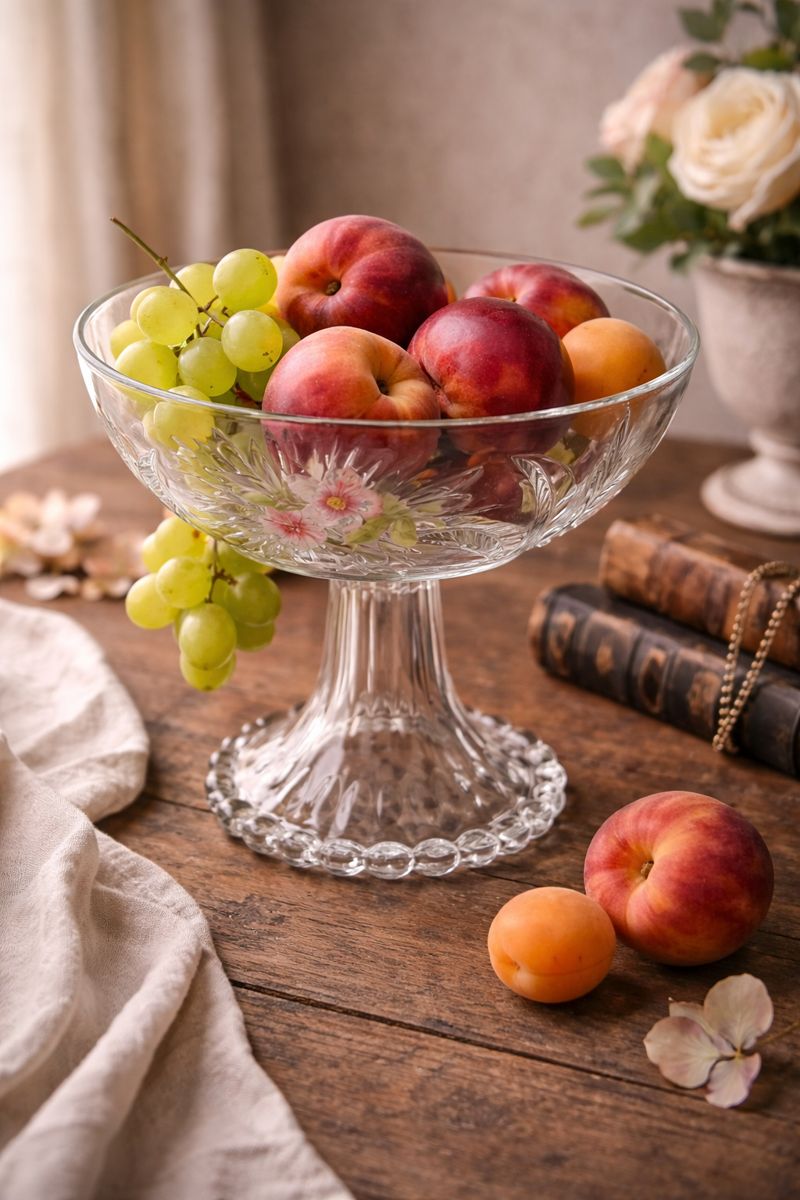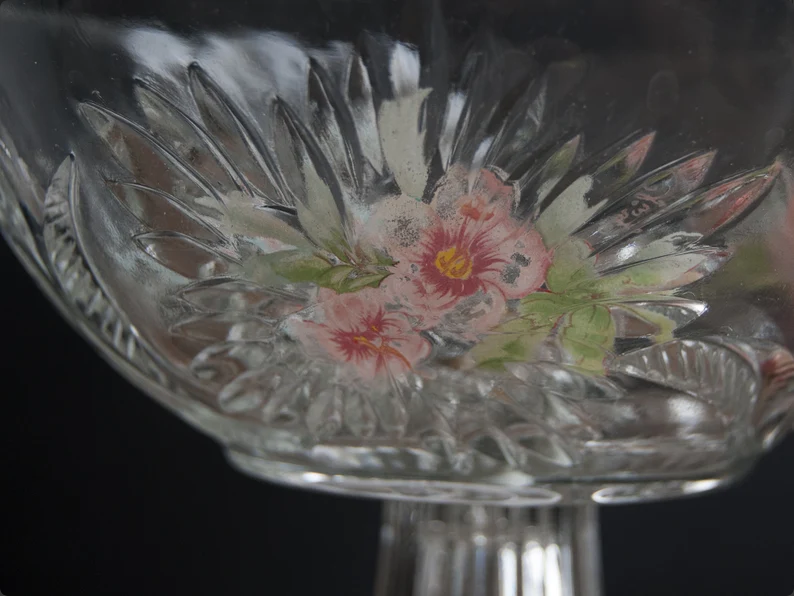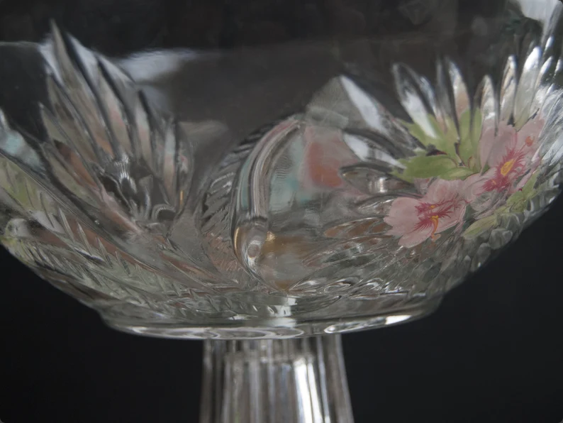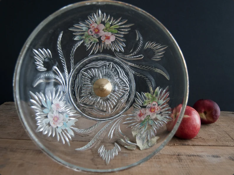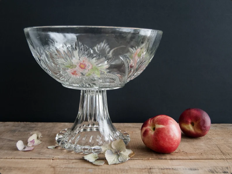 vintage fruit bowlVintage French Floral Glass Fruit Bowl on Pedestal
