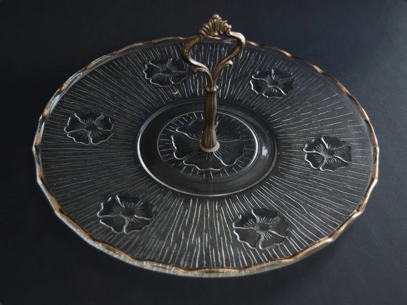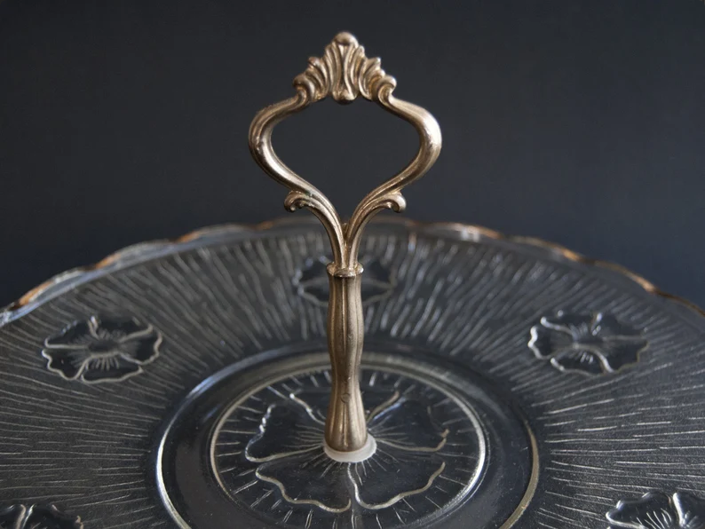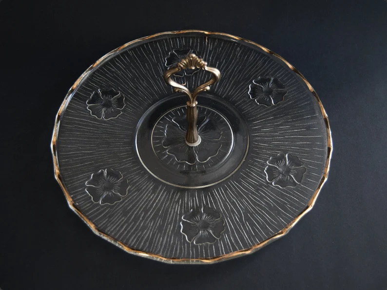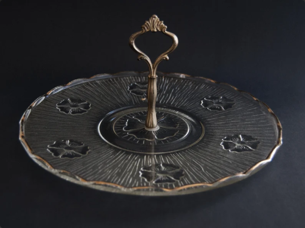 Vintage French Glass Cheese Plate with Brass Handle Art Deco StyleAvailability: In stock