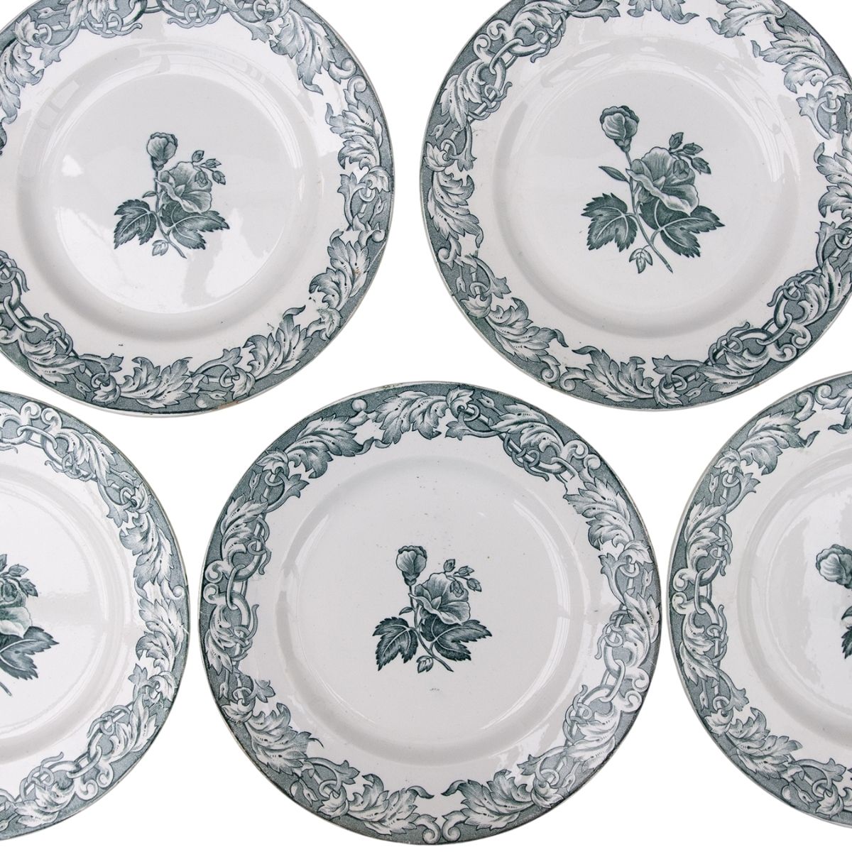 Set of 5 Antique French Dinner Plates – Green Transferware “Valérie” by Saint AmandAvailability: In stock