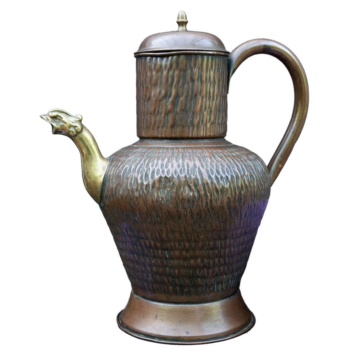 Vintage French Hammered Copper Pitcher with Dragon Spout – Large Decorative Jug