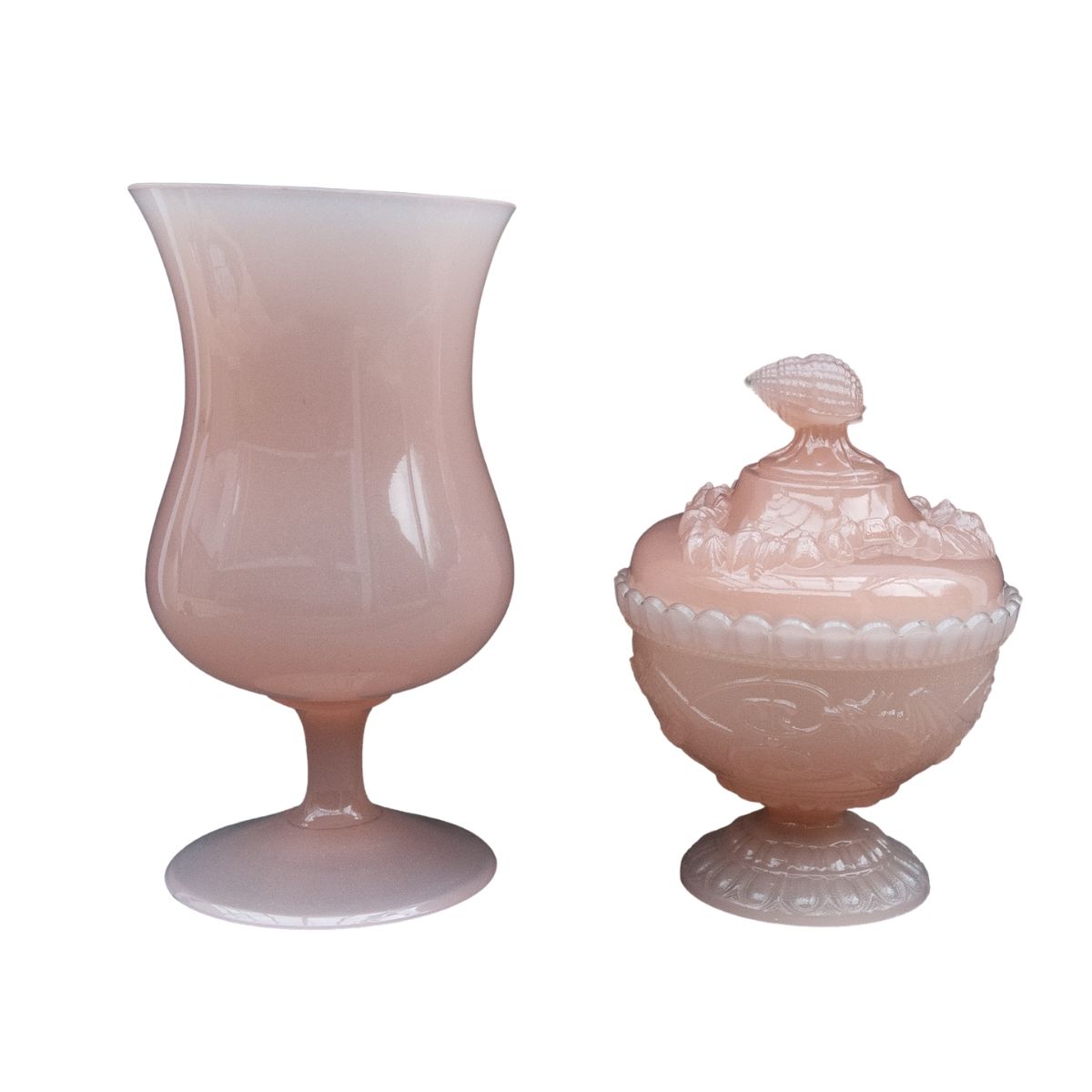Vintage Pink Opaline Vase & Portieux Candy BoxVintage Pink Opaline Vase & Portieux Candy Box – French Glassware
