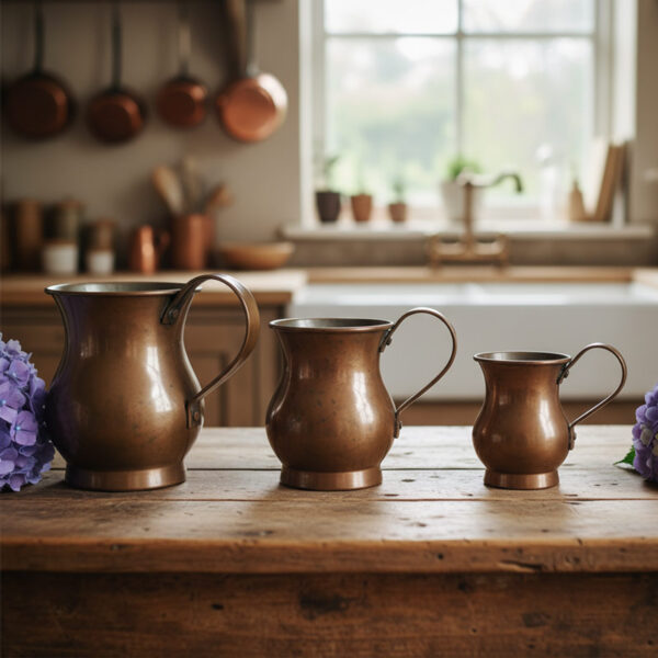 Vintage small decorative jugs in copper set of 4Availability: In stock