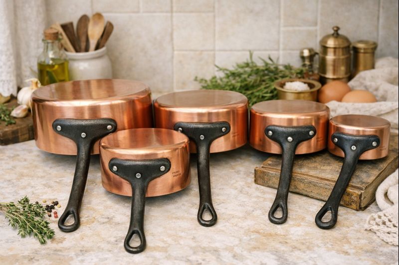 Set of 5 Vintage TOURNUS French Copper Pans – Cast Iron HandlesAvailability: In stock